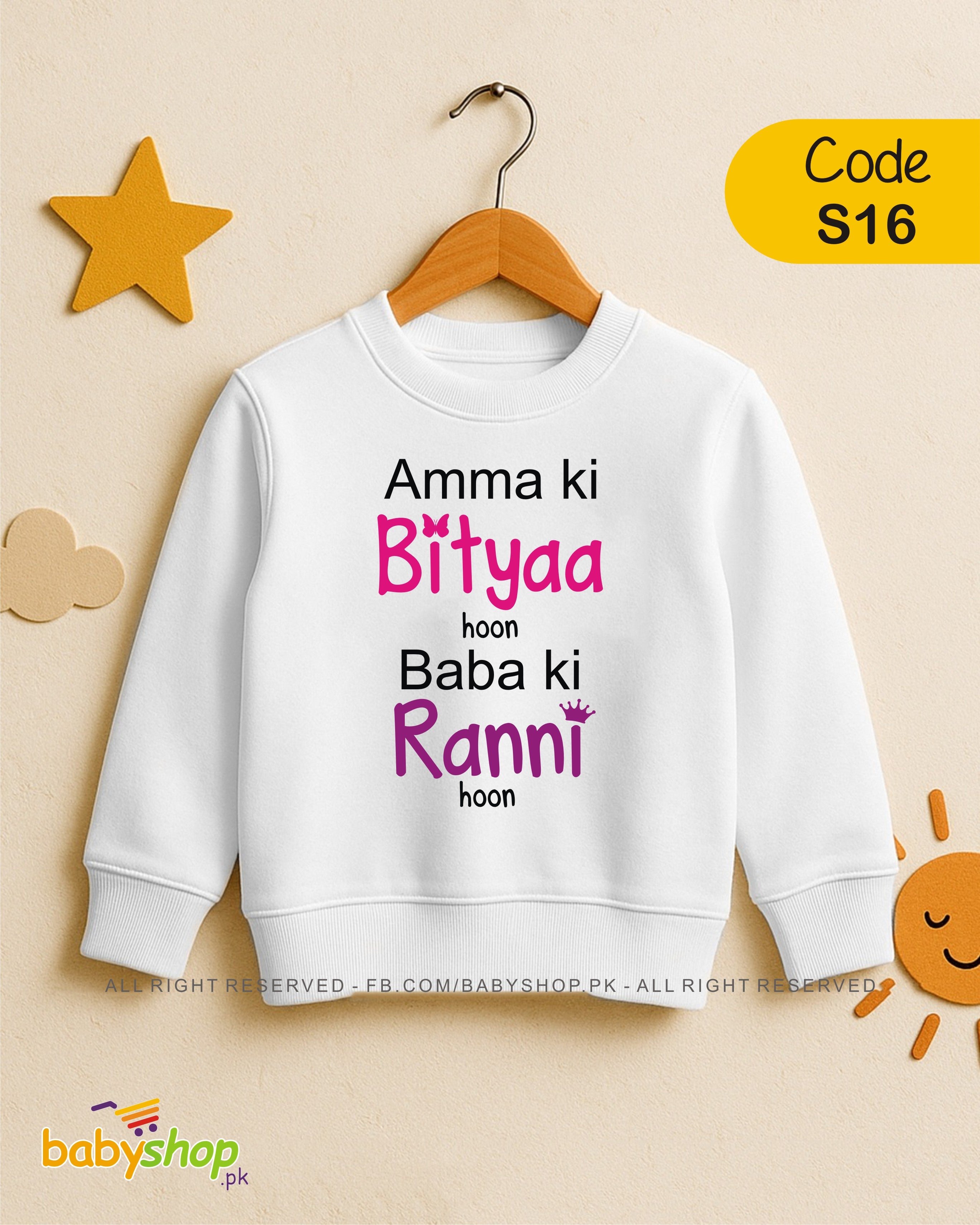 AMMA KI BITYAA HOON BAAB KI RANNI HOON baby sweat shirt